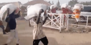 In a video sighted by this publication, residents were seen in droves carrying the looted items on their head, in their cars and engaging motorcyclists to assist them carry the items to their respective destinations.