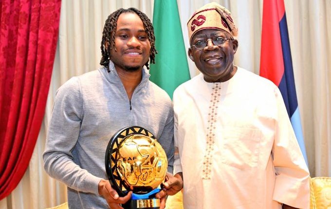Ademola Lookman pays a visit to President Tinubu to present his 2024 CAF African Footballer of the Year award.