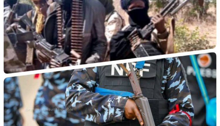 A video posted on X showed travellers gathered by the roadside out of fear as the policemen battled the bandits from far away.