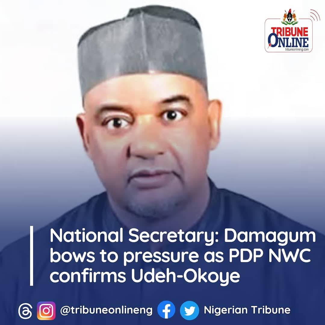 PDP Acting National Chairman Damagum have written INEC to recognise Hon S K E Udeh Okoye as National Secretary.