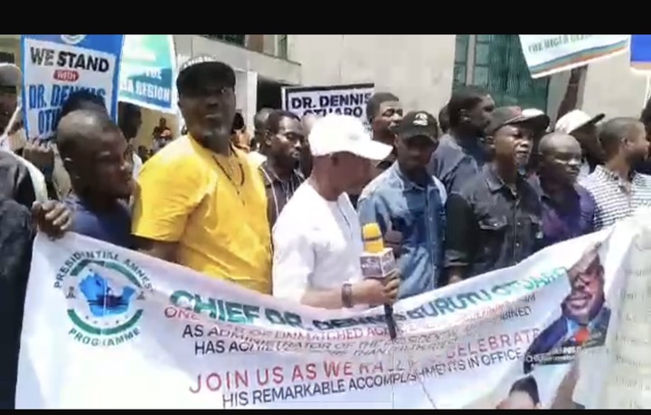 The protesters, rallying under the banner of Ex-Agitators under Ex agitators from phase 3 of presidential amnesty, accused Boyloaf and Shoot-at-Sight of orchestrating smear campaigns against High Chief Government Ekpemupolo, popularly known as Tompolo, and Dr. Dennis Otuaro, Administrator of the Presidential Amnesty Programme (PAP). They alleged that the duo, pained by Tompolo’s recommendation of Otuaro for the PAP role, which curtailed their influence and looting, have sponsored individuals abroad to defame Tompolo with baseless accusations of crimes against humanity and malign Otuaro with false claims of embezzling amnesty funds.