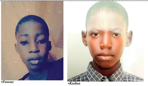 Fawaz Surajudeen and Kudus Oseni – both 14 – had reportedly gone out together last Sunday but had not returned home since then.