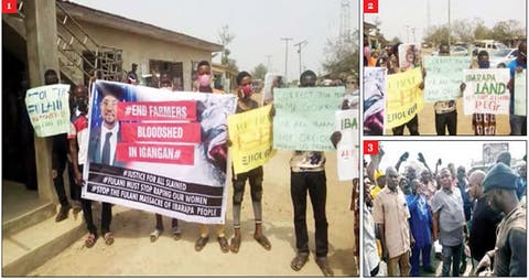 The youths protested the incessant killings, violent rapes and maiming of farmers and other Indigenes by criminals suspected to be herdsmen in the town and other parts of Igangan.