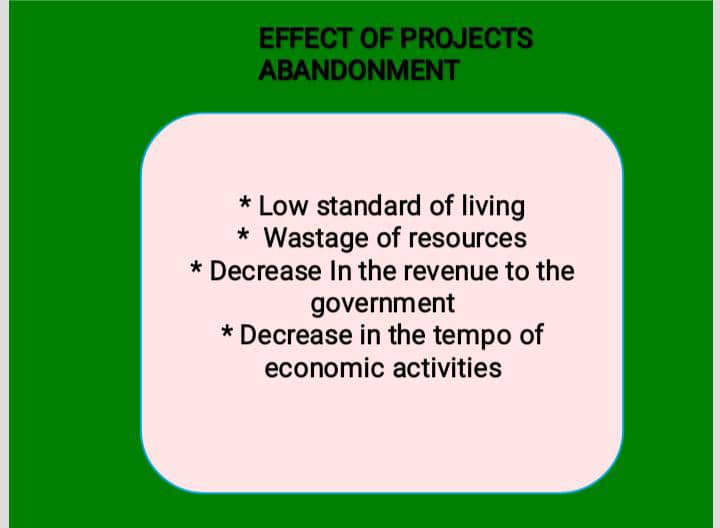 A report: “Abandonment of Construction Projects in Nigeria,” shared by Nairametric, mentioned causes such as inadequate planning, inadequate finance, inflation, delayed payment and political factors, incompetent project manager, wrong estimate, faculty, design and inadequate cost control. It goes further to state that the effect of project abandonments is a disappointment of the populace, users, low living standard unemployment, wastage of resources, decrease in the tempo of economic activities and decrease in revenue to the government.