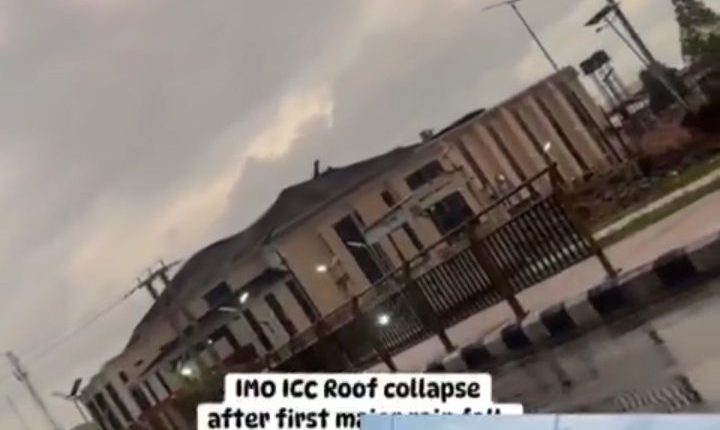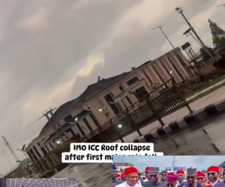 A video currently making rounds on social media has captured the shocking moment the roof of the Imo International Conference Centre (IICC) in Owerri collapsed, barely weeks after it was inaugurated by President Bola Tinubu on September 30, 2025.