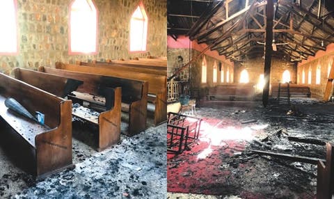 Reports say police barracks, churches and a house belonging to Gen Paul Tarfa (retd.) were among several buildings burnt by the terrorists during the attack.
