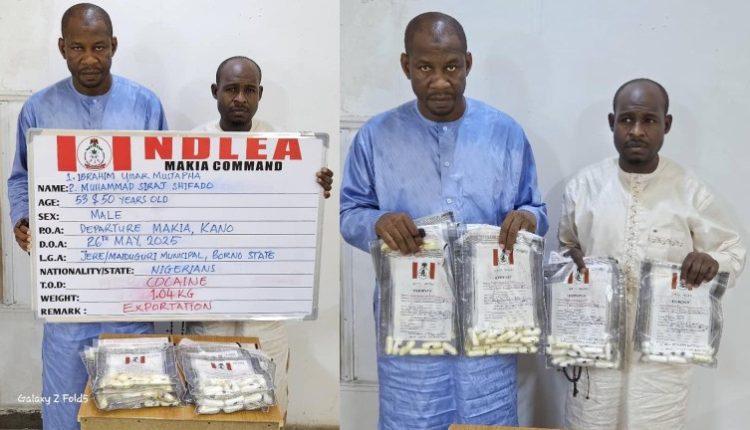 Investigation soon unraveled their sponsors as leaders of a notorious drug trafficking network, which specializes in trafficking illicit drugs to Saudi Arabia. A swift follow-up operation was carried out, and the trio of Abubakar Muhammad, Abdulhakeem Muhammed Tijjani, and Muhammad Aji Shugaba were arrested on Tuesday 27th and Wednesday 28th May 2025 in Kano.