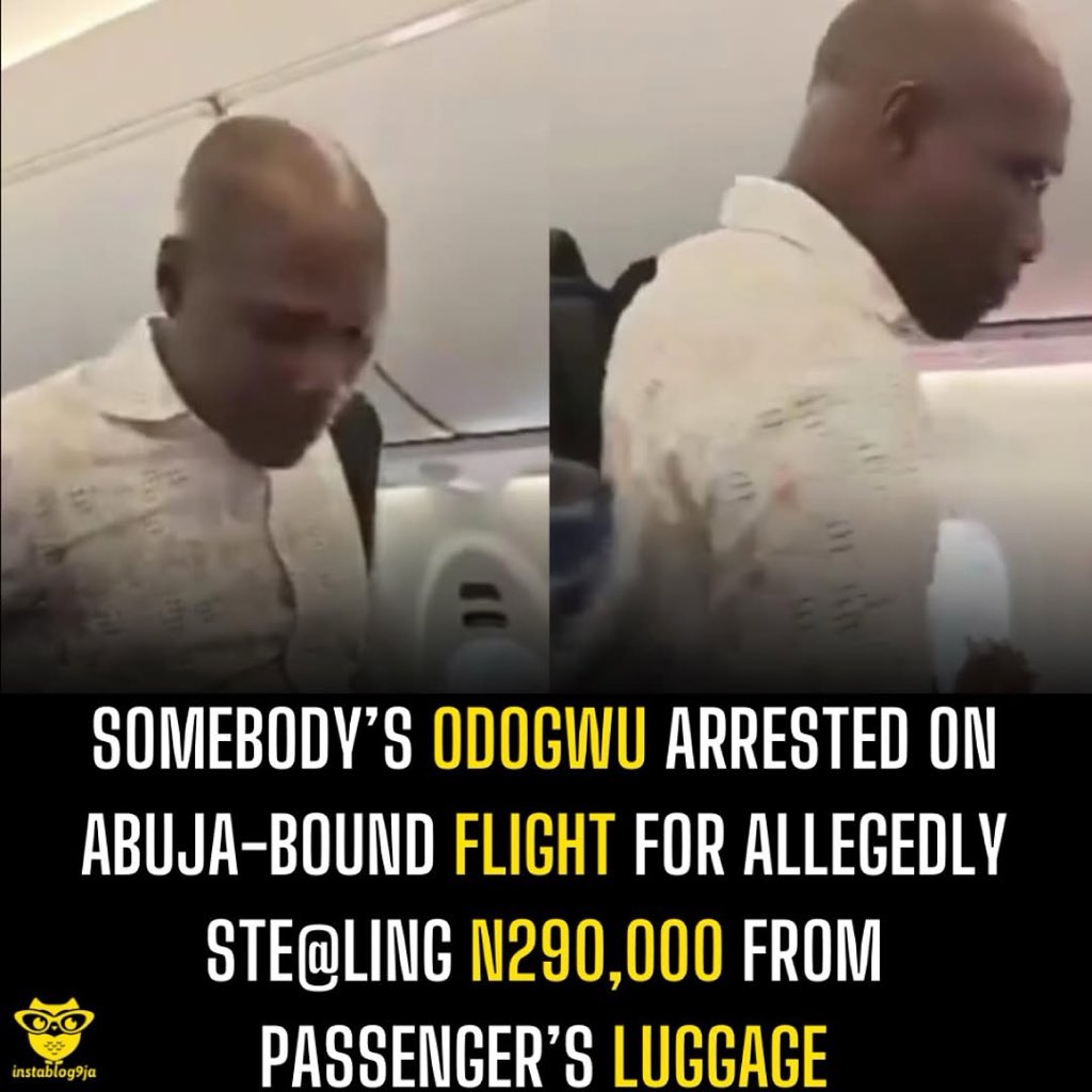 A man was arrested aboard an Abuja-bound flight after he was allegedly caught st£aling ₦290,000 from the luggage of a white passenger.