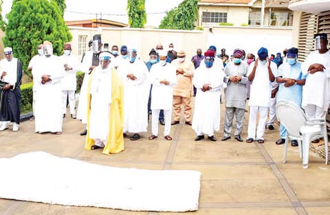 The remains of the former governor, who died in a Lagos hospital as a result of multiple organ failure, was laid to rest at 10.05am on Sunday amid tight security. The three gates leading to the 6th Avenue, Yemoja Street, Oluyole Estate residence of the deceased were manned by the police and men of the Nigeria Security and Civil Defense Corps.