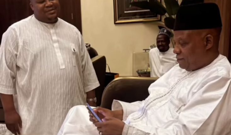 THIS IS MY FATHER, CELEBRITY BARMAN, CUBANA CHIEF PRIEST CLAIMS AS HE POSTS PICTURE AND VIDEO OF HIMSELF KNEELING BEFORE VICE PRESIDENT, KASHIM SHETTIMA
