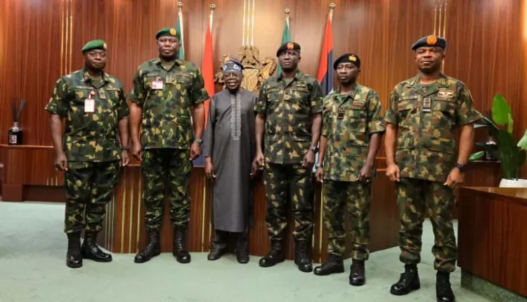 President Bola Ahmed Tinubu on Tuesday met with the nation’s Service Chiefs in a closed-door session as part of intensified efforts to address the growing insecurity across the country.